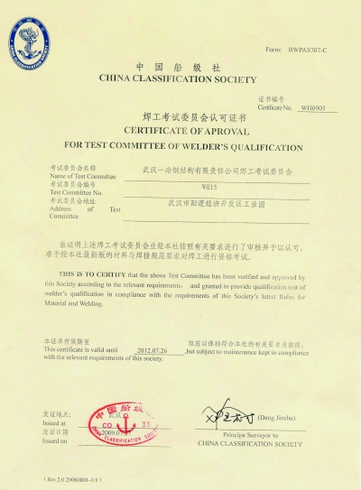 中国船级社证书