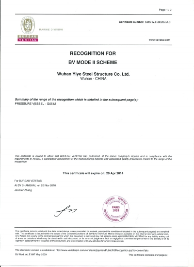 据统计,截止到2009年底,全球74个国家和地区共有阿斯米持证厂商5942家,中国共426家,其中持有U2证书的厂商仅有53家。一冶钢构则拥有美国ASME(阿斯米)U和U2钢印认证及法国船级社BV、日本海事协会NK认证。