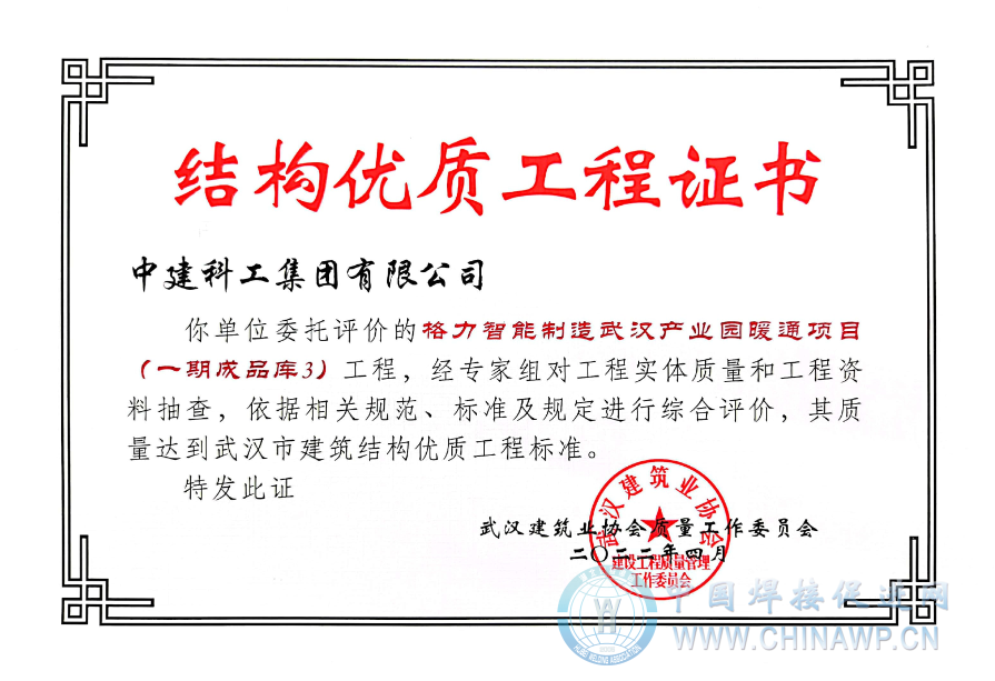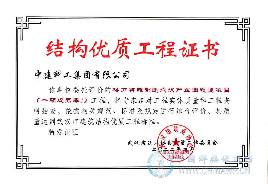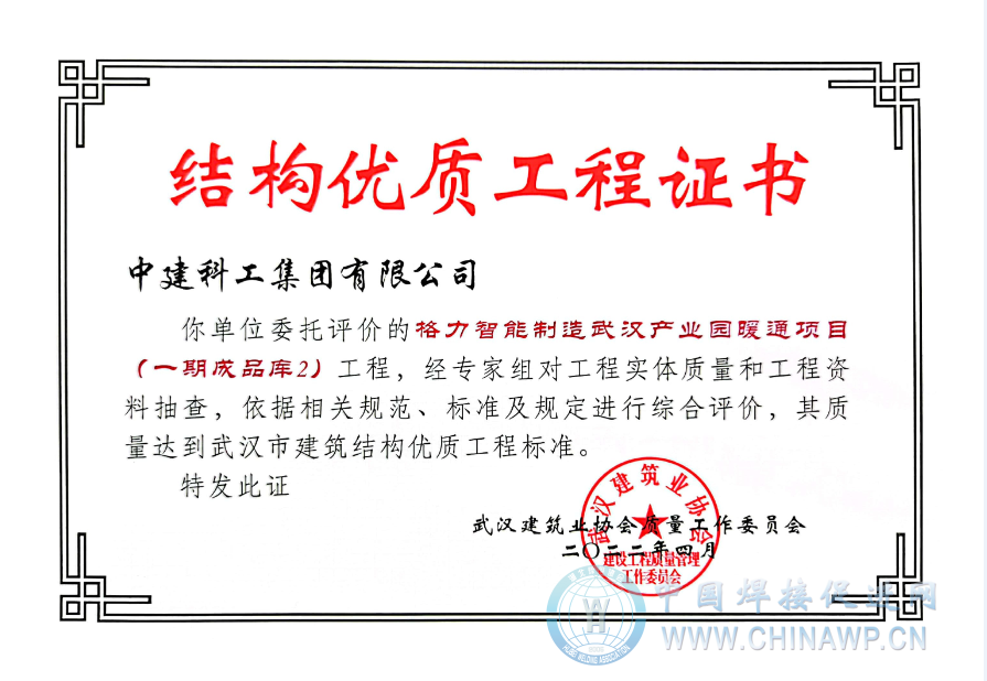(通讯员:杨杰、李佳、黄锋)日前,从武汉建筑业协会获悉,由中建科工集团有限公司承建的格力智能制造武汉产业园暖通项目(一期成品库1、成品库2、成品库3)被评为武汉市建筑结构优质工程。
