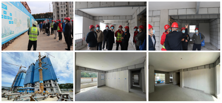 【装配式住宅观摩】与会人员进入蔡甸经开区工业园公共服务设施配套项目装配式钢结构住宅楼栋进行观摩,项目部技术、质量、生产等专业人员介绍钢结构装配式住宅基本情况、钢结构的特点、项目施工重难点、施工工艺与流程、质量控制要点等,观摩中项目部分享了装配式钢结构住宅施工的新技术新方法的应用,钢结构运用的节地节材节能等的优势,施工安装高效快捷,安全实用性及质量标准化易控制的特点与优秀做法。